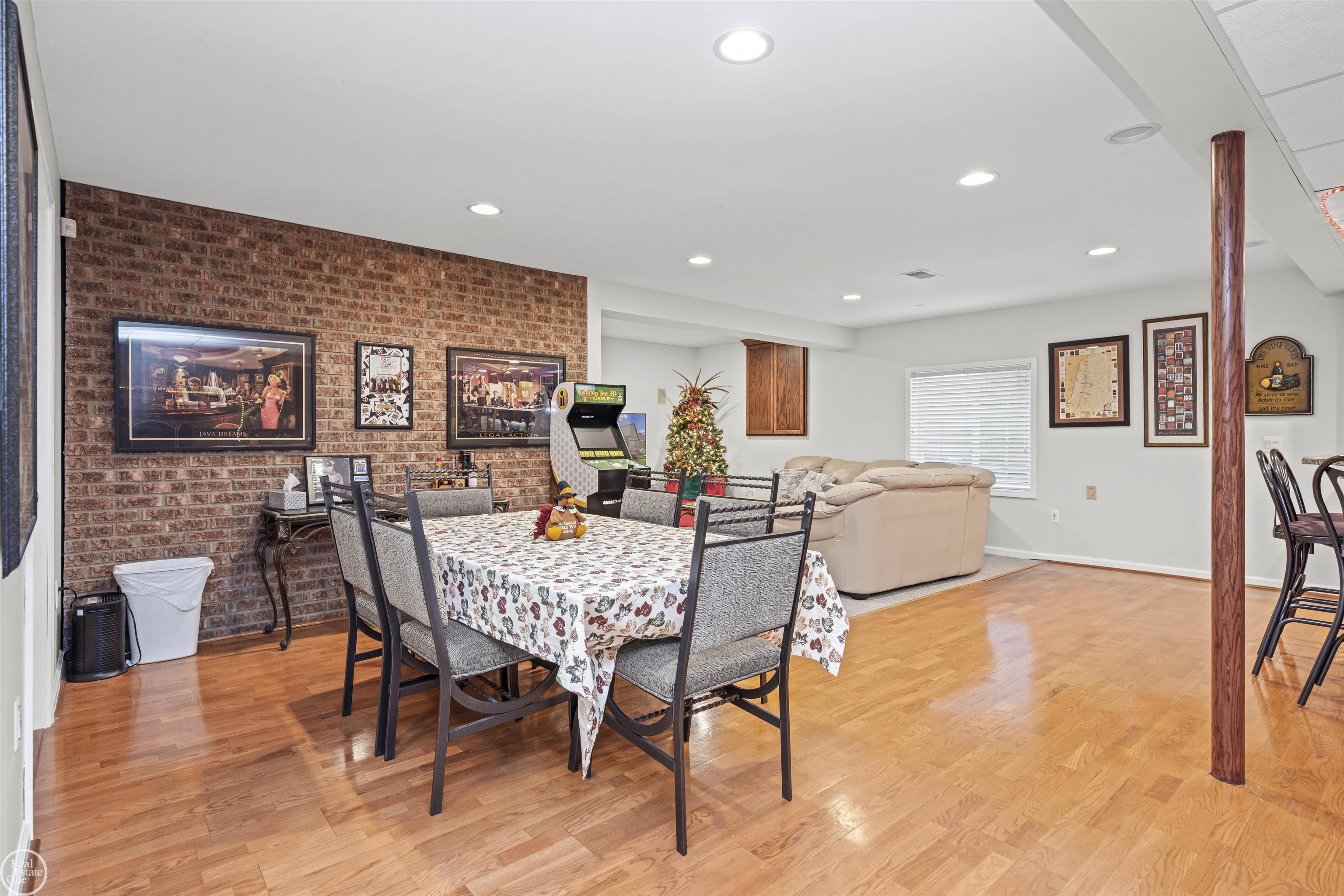 Welcome to this stunning 3+ bedrooms all with walk in closets, 3.5 bath split level home that offers the perfect blend of modern comfort & timeless style. The moment you step inside, you’ll appreciate the bright open concept layout, gleaming hardwood floors & thoughtfully updated finishes throughout. Main bedroom has 2 walk in closets and private ensuite with a jetted tub! The heart of the home features a beautifully updated kitchen with granite, quality cabinetry, ample counter space, modern fixtures, high end appliances and walk in pantry. The kitchen opens seamlessly into the dining & living areas. Newer door wall leads to the outside where you will fall in love with your own private backyard oasis-complete with a stamped concrete patio, outdoor hot tub to unwind in & professionally landscaped grounds featuring a whimsical fairy garden. Enjoy outdoor fun with a personal putting green making this yard both peaceful and playful. The beautifully finished basement, an impressive extension of your living space—ideal for a recreation room, guest suite, home gym, and complete with a full bathroom. Elegant wood floors invite you to dance the night away, while the stylish granite-topped bar is ready to entertain all your guests. A charming natural fireplace with gas logs adds warmth and ambiance, and the striking brick walls bring character and charm to this unforgettable space. Major mechanical upgrades bring peace of mind, including an updated furnace and A/C, a newer roof, several replaced windows, newer vinyl, custom brick work and a high-efficiency tankless water heater. Warm, welcoming, and meticulously cared for, this home is ready to offer its next owner the same comfort, joy, and wonder it has held since day one. Agent Owned!