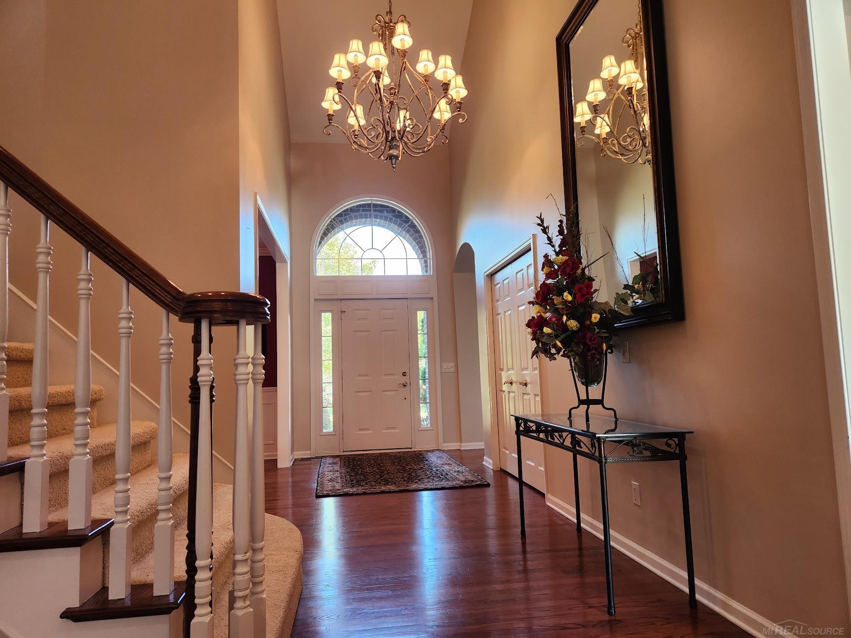 Immerse yourself in luxury at 54060 Birchfield Drive West, a one and a half story 3100 sq ft home located in the residential community of Carrington Manor. This well-maintained home boasts four spacious bedrooms, 3.5 bathrooms, surrounded by professional landscaping, adorned with unique colorful, ornamental plants, and established trees. Come inside to a welcoming 2-story hardwood floor entryway connecting to a private home office with cathedral ceilings. The first-floor primary suite is a personal oasis, complete with a vaulted tray ceiling, two custom WIC, and a glamorous vanity styling area. The primary bath features a rejuvenating jacuzzi tub, dual vanities, and a remodeled shower. The heart of the home lies in its spacious great room, featuring a soaring ceiling, crown molding, floor-to-ceiling windows, and a double-sided gas fireplace shared with the eat-in kitchen. Enjoy meals in a formal dining room equipped with a well-appointed butler's pantry. Enter the eat-in kitchen to find a vaulted ceiling, double oven, granite counters, custom cabinetry, and breakfast counter seating. Upstairs, discover a princess suite, and two additional bedrooms sharing a full bathroom with double vanity. The finished walkout basement adds 2300 sq ft of living space, additional full bath, pre-wired media room, gaming area, plumbed for second kitchen, and areas for home gym and hobby room. Outdoors, relax on a composite deck overlooking serene backyard views. For your comfort, a new 98% energy-efficient Lenox furnace with AC installed in 2022, new roof installed in 2019, convenient first-floor laundry with newer Electrolux front-loading washer and dryer, 3-car attached garage and a whole-home alarm system. Nestled within the Utica Community School District, this home is near vibrant Downtown Rochester, offering lively shopping, dining, and entertainment. The Stoney Creek Metropark and Macomb Orchard Trail are also nearby.