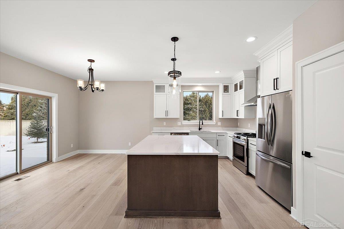 The Villas of Villagio New Construction Ranch offering a custom quality home with low-maintenance living. Move-in-ready, 3 bedroom, 2 full baths, Lafata Cabinets, Quartz countertops, light-color hardwood floors, spacious functional living area, upgraded bathroom tile package, modern sleek fixtures, rear composite deck, kitchen appliances, sod & sprinklers, landscaping, large open basement just to get started. The Association includes lawn cutting and snow removal. This home has style and comfort while maintaining a community feel.